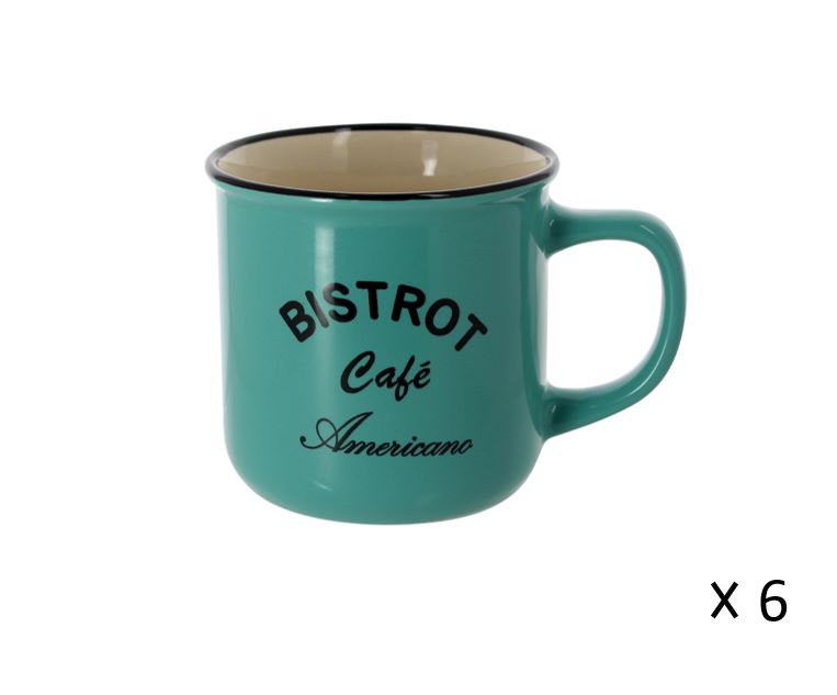 En savoir +Découvrez ce lot de 6 mugs 33 cl BISTROT en grès couleur Bleu. Retrouvez tout le charme et l'ambiance chaleureuse des bistrots avec cette tasse au look délicieusement rétro avec inscription "Americano". Compatible lave-vaisselle et micro-ondes.