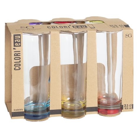 Lot de 6 verre de 31 cl Couleurs : rose, turquoise, vert, jaune, orange Compatible au lave vaisselle