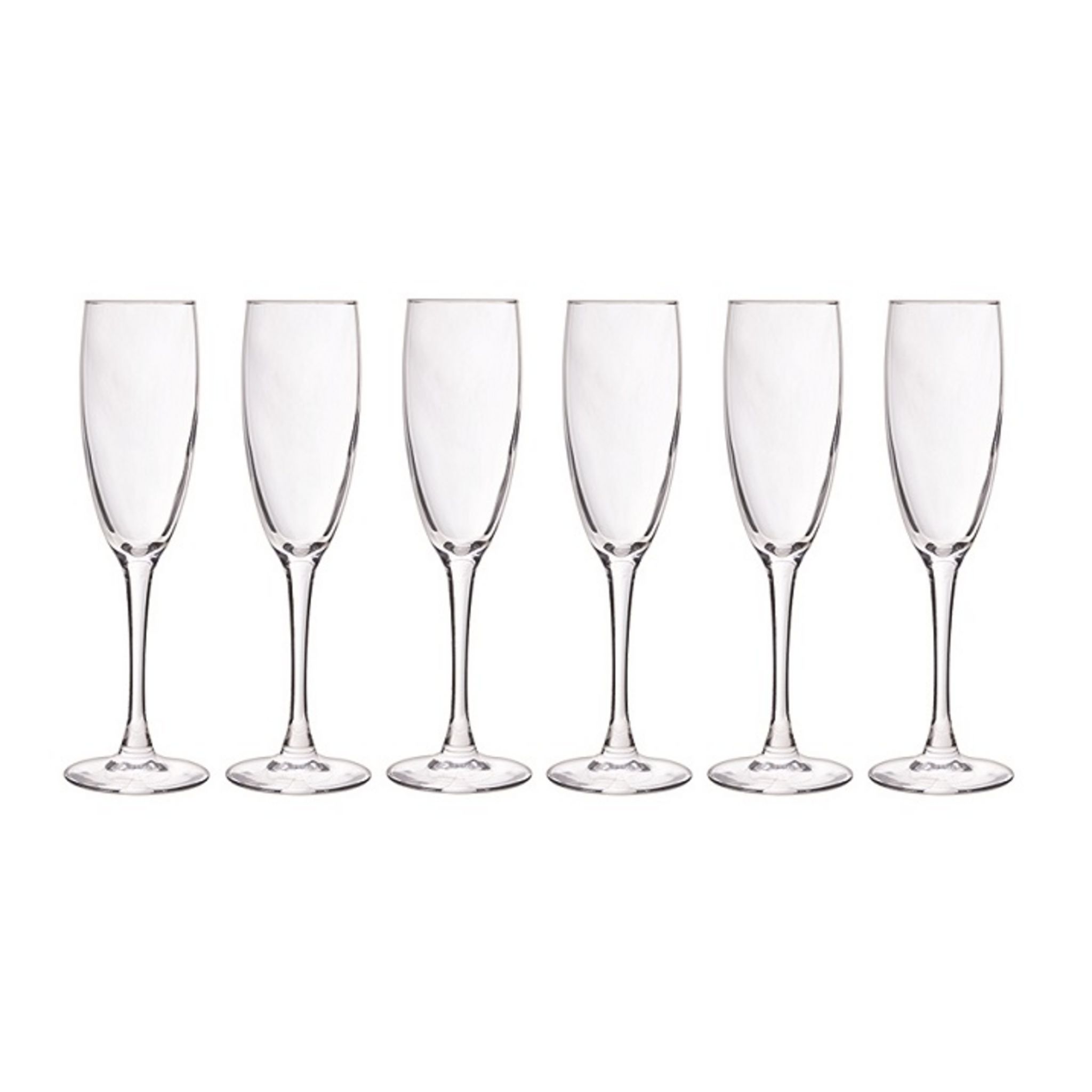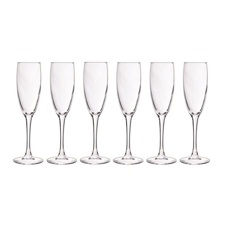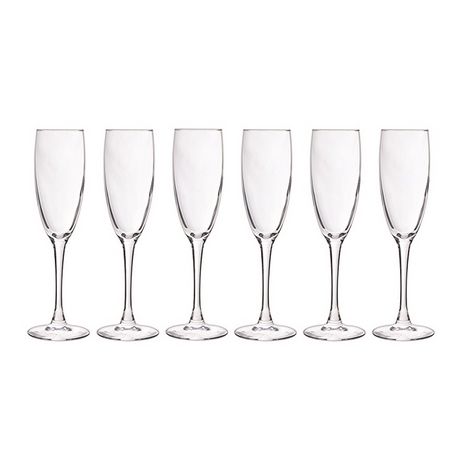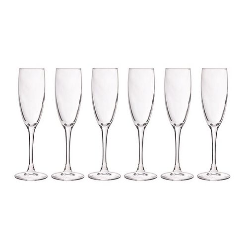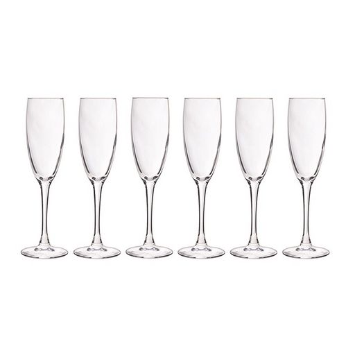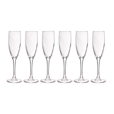 Lot de 6 verres à champagne 19 cl. Compatible au lave vaisselle.