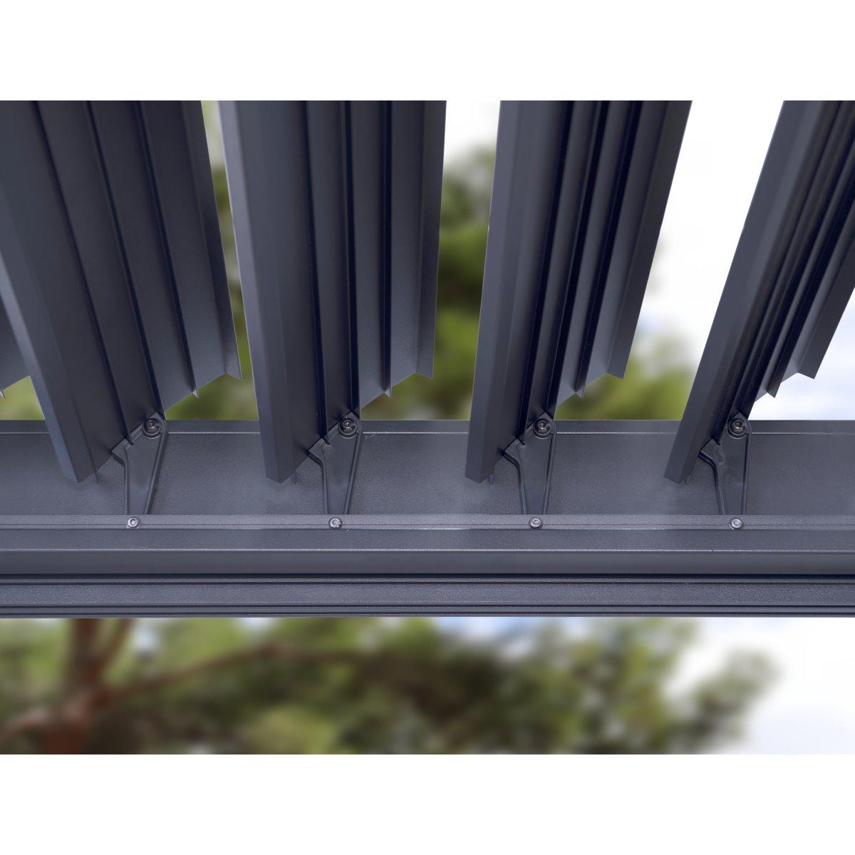 La tonnelle Bioclimatique Fusain proposée par Terria est un modèle avec une structure composée entièrement d'aluminium qui qui résistera aux intempéries et aux UV. Les socles de fixations sont en zinc traités contre la corrosion pour une meilleure qualité et durabilité de la tonnelle. Ses dimensions