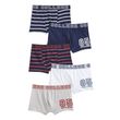 Place au confort avec ce lot de 5 boxers garçon. 100% coton. Doublure sur le devant, coutures renforcées. Ceinture élastiquée assurant un bon maintien. Coloris et motifs variés. Ce lot de 5 boxers enfant est lavable en machine à 40°.