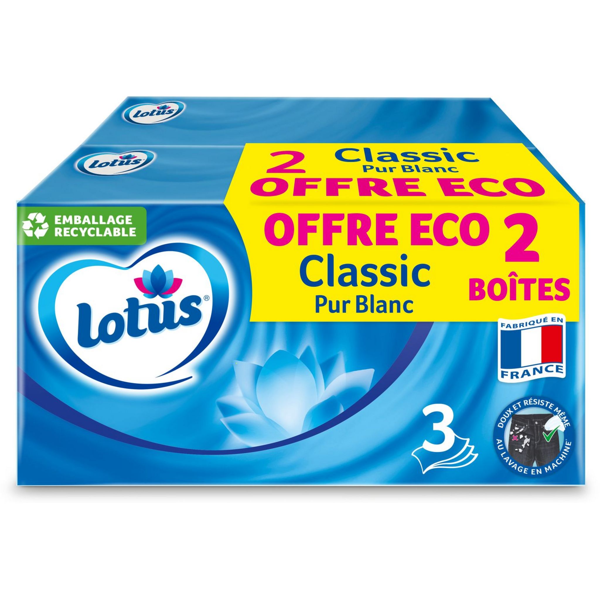 Boîte Mouchoirs Lotus Pur Blanc Offre Eco 2x96