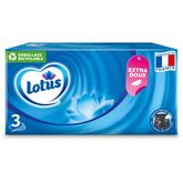 Boîte de mouchoirs Lotus Pur Blanc x90 Boîte de mouchoirs 3 épaisseurs, Lotus Pur Blanc Les mouchoirs LOTUS® vous offrent douceur, confort et résistance, en toutes circonstances. Les boîtes de mouchoirs LOTUS® Pur Blanc se mettent à disposition de tous, dans la maison. Découvrez la nouvelle qualité Lotus : les mouchoirs résistent même au passage en machine à laver!