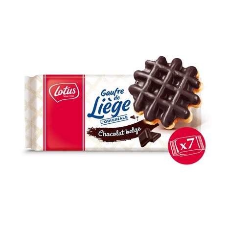 "Souvent imitée, jamais égalée ... notre exquise Gaufre de Liège aux véritables perles de sucre caramélisées ! Parfaitement préservée dans son sachet fraicheur, nature ou nappée de véritable chocolat Belge elle est tout simplement irrésistible. L' astuce Lotus : réchauffez votre gaufre quelques instants au four, elle n'en sera que meilleure."