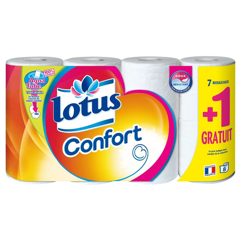 Papier Toilette LOTUS® Confort rose AQUA TUBE® 2 épaisseurs. Grâce à son toucher velours, le papier toilette LOTUS® Confort offre l’association parfaite d’une douceur extrême et d’une très grande résistance, pour une pause LOTUS® encore plus confortable. Son motif discret se marie idéalement à vos envies de sobriété et de douceur de vie. Avec le papier toilette LOTUS® Confort, chaque pause devient un instant de sérénité.