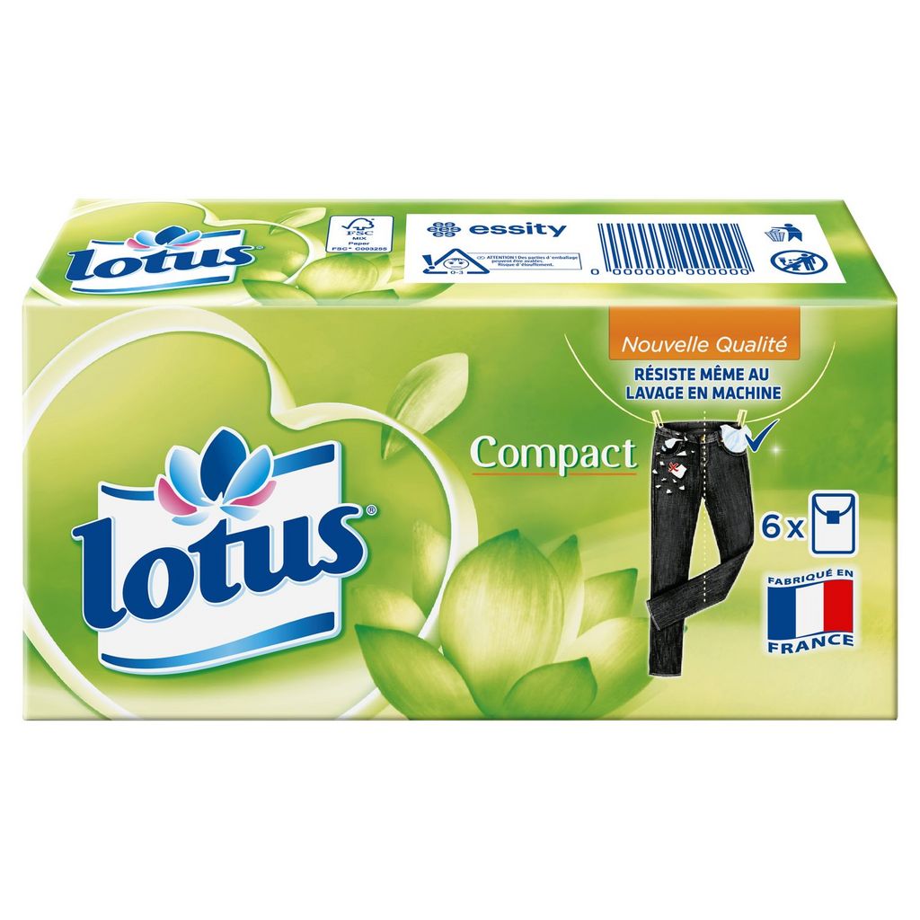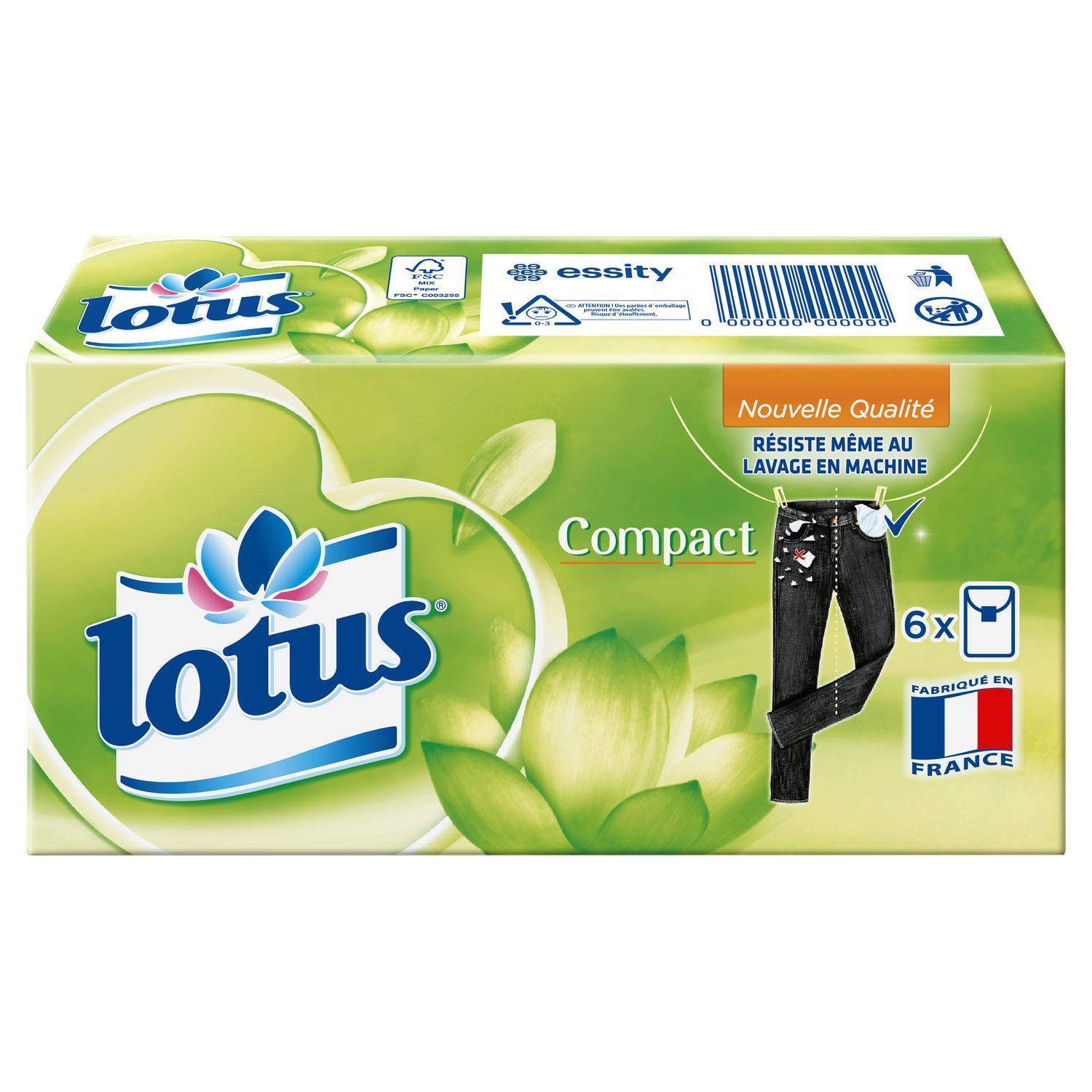 Douceur, confort et résistance en toutes circonstances. Grâce à leur format compact, les mouchoirs étuis Lotus Compact se glissent dans toutes les poches et sacs. Découvrez la qualité Lotus : les mouchoirs résistent même au passage en machine à laver ! Mouchoirs Etuis Lotus Compact x6 étuis