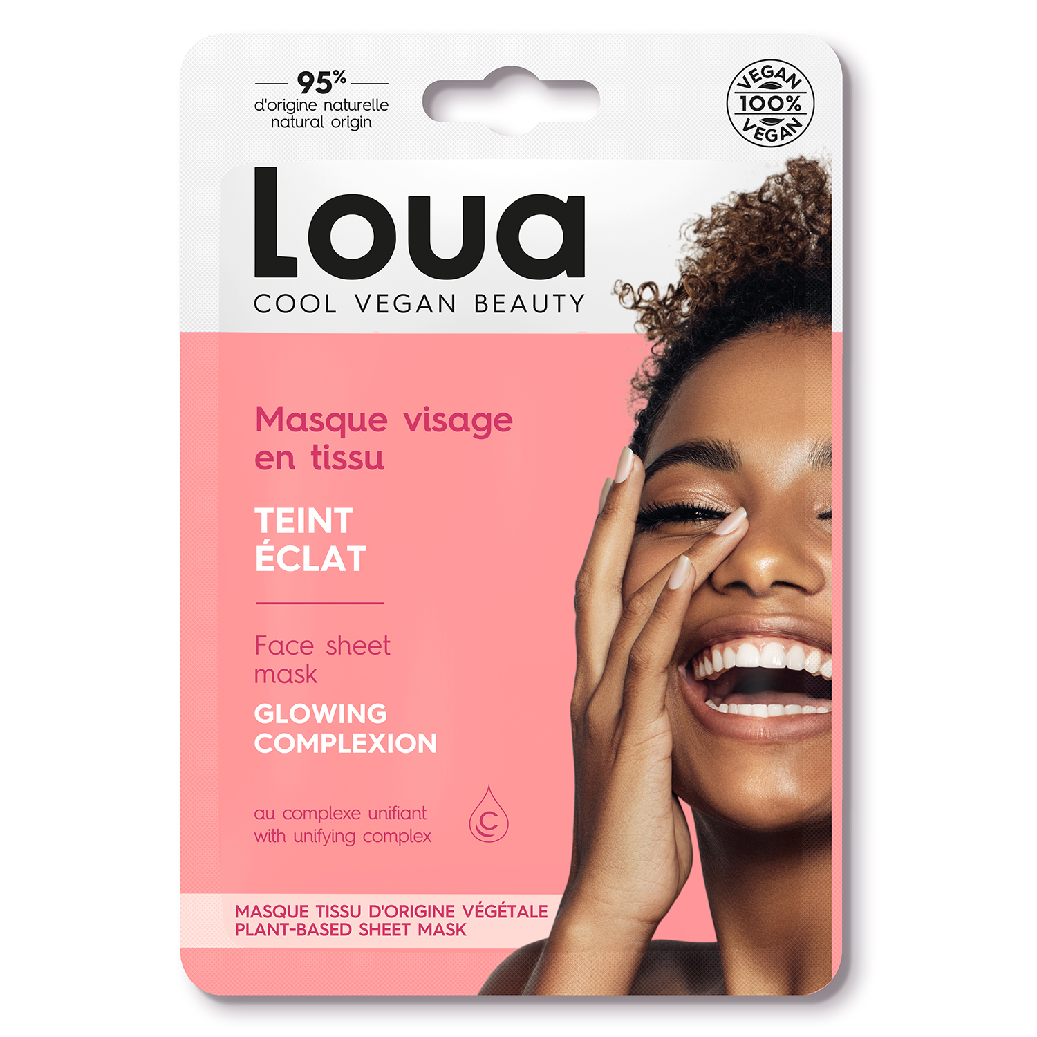 Loua est la petite fabrique de cosmétiques pour toutes les envies de la jeune millenial ! Tous les ingrédients de Loua sont là : son univers fun et coloré, ses textures incroyables, ses packagings ludiques, ses filles hyper friendly ! Né en 2015, la toute jeune marque Loua a lancé les 1ères bandes de cire froide nomades (formats voyages souples au design pop) bouleversant les codes du dépilatoire qui auront le prix produit de l’année en 2016. LOUA MASQUE VISAGE EN TISSU TEINT ECLAT