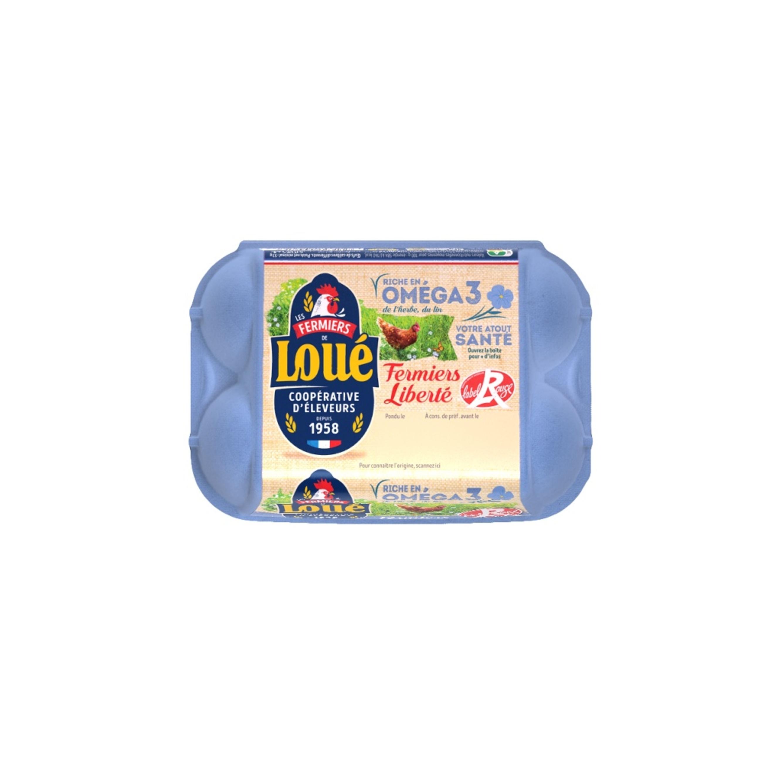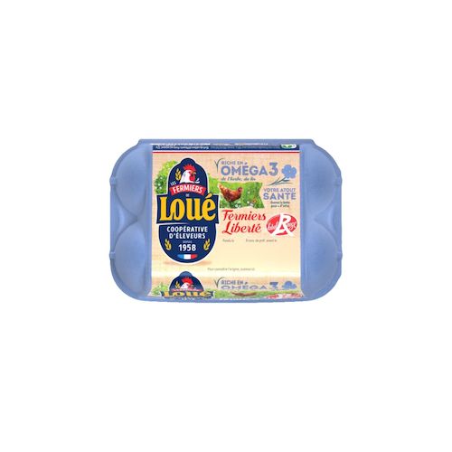 6 œufs fermiers Label Rouge enrichis en oméga 3 de poules élevées en plein air et en liberté. Loué, la seule marque IGP (Indication Géographique Protégée) pour les œufs.