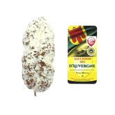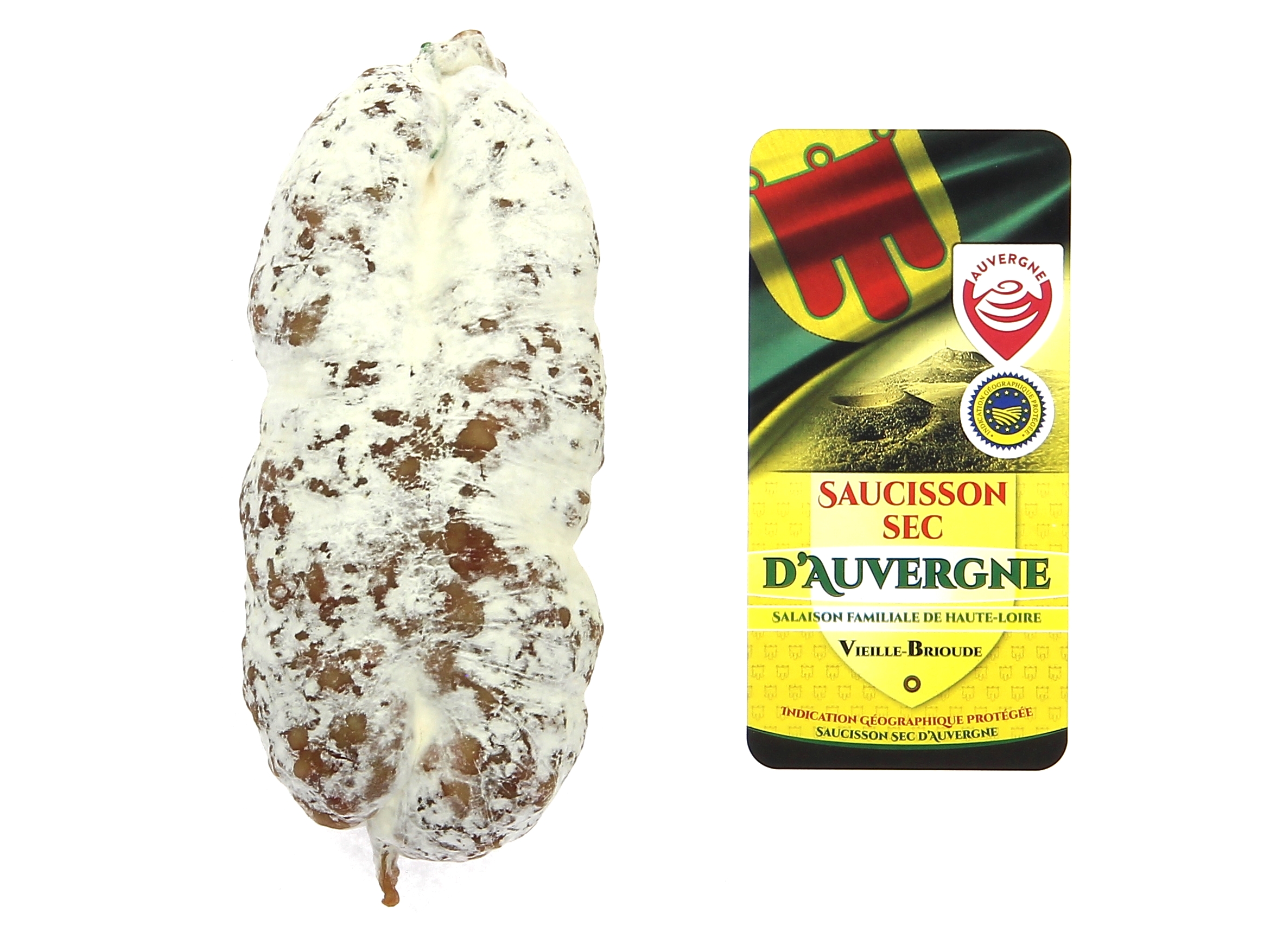 maigre et gras de porc (porc origine FRANCE), sel, lactose ( LAIT ), dextrose, saccharose, épices, alcool, ferments lactiques, conservateur : E252,E250. boyau naturel de porc