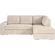 Canapé d'angle droit 3 places convertible ADEN avec coffre en velours côtelé - Beige - L246 x P174 x H96cm - LOUNGITUDE
