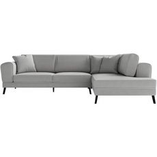 Canapé d'angle droit convertible IMPERIAL 5 places - Tissu gris clair - 2 coffres de rangement - L304 x P212 x H86 cm