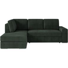 Canapé d'angle gauche 3 places convertible ADEN avec coffre en velours côtelé - Vert foncé - L246 x P174 x H96cm - LOUNGITUD