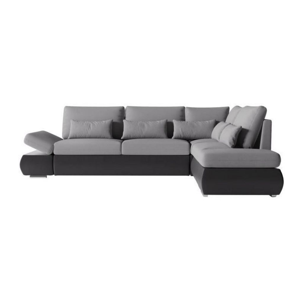 Canapé d'angle réversible convertible SEVARA 4 places - PU et tissu Gris - Coffre de rangement - L267 x P200 x H90 cm