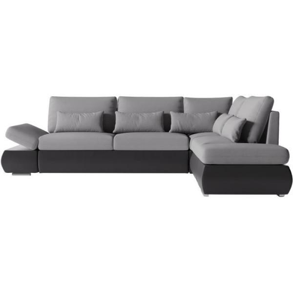 Canapé d'angle réversible convertible SEVARA 4 places - PU et tissu Gris - Coffre de rangement - L267 x P200 x H90 cm