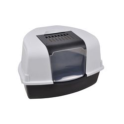 Optimisez l'espace avec la maison de toilette JASPER, spécialement conçue pour se glisser dans un angle. Son filtre à charbon actif limite les odeurs, tandis que sa forme ingénieuse offre confort et intimité à votre chat. Idéale pour les intérieurs compacts.