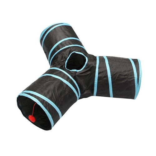 Ce tunnel de jeu pliable pour chat est l'accessoire idéal pour offrir à votre compagnon félin des heures de divertissement et d'exercice. Conçu pour stimuler l'instinct de chasse et de jeu de votre chat, ce tunnel est équipé de 4 ouvertures permettant à votre chat de se faufiler, se cacher et se div