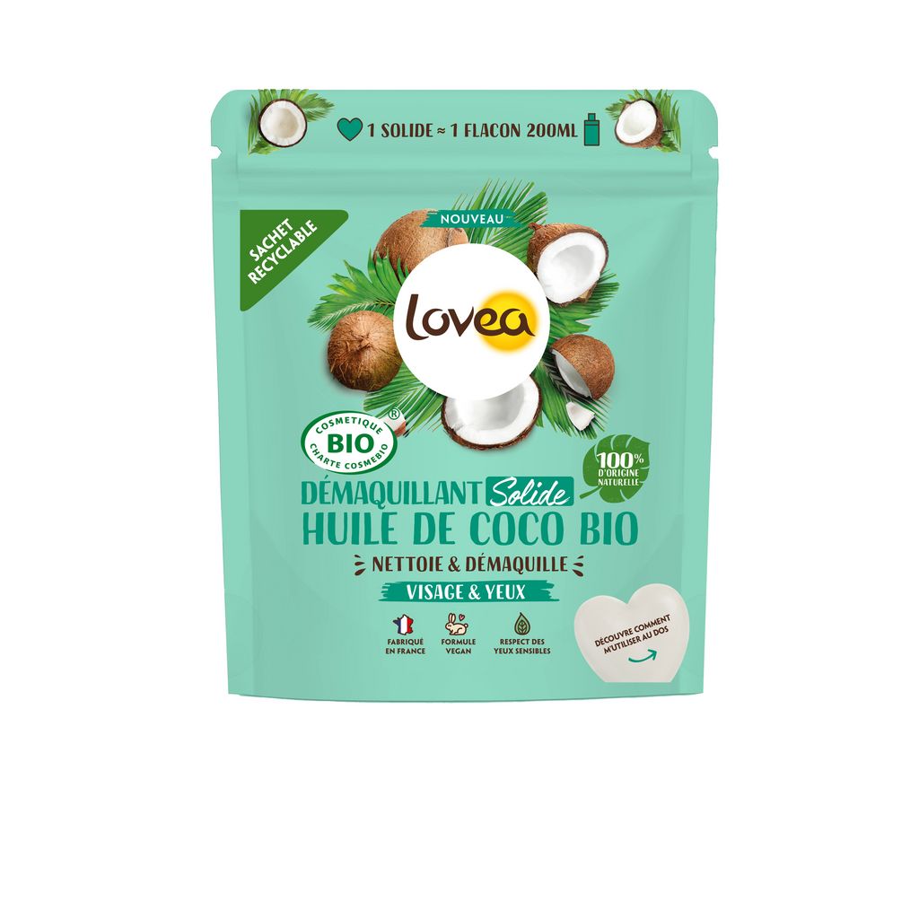 Démaquillant Solide - Huile de Coco Bio - Certifié BIO Cosmos - 50 g - LOVEA