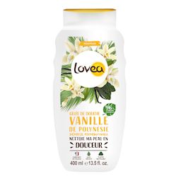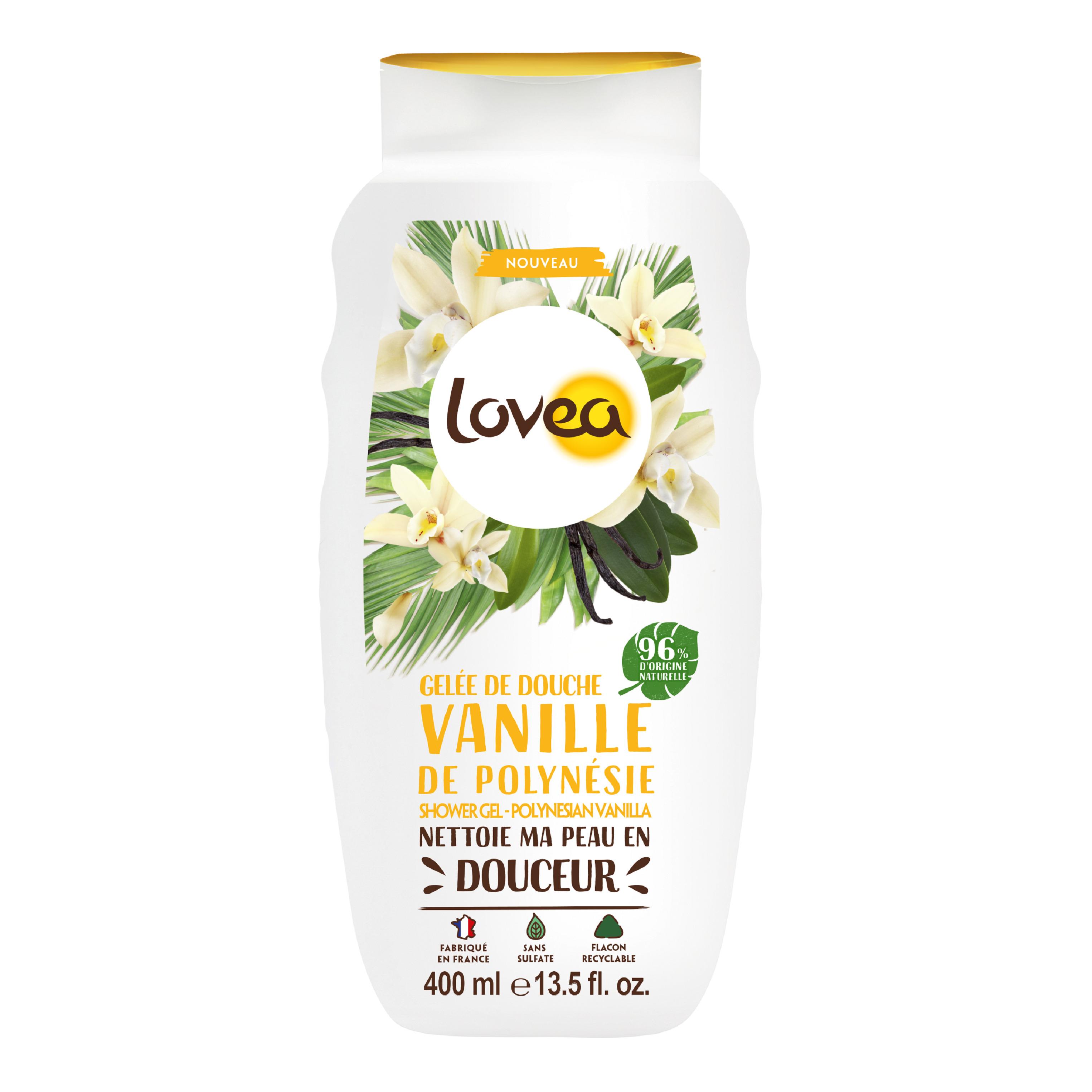 La Gelée de Douche Lovea à l'extrait de Vanille de Polynésie, à la texture fraîche et fondante, nettoie la peau en douceur. Résultats : sa mousse fine et onctueuse laisse la peau douce et délicatement parfumée. Vous n'avez jamais autant voyagé le temps d'une douche.