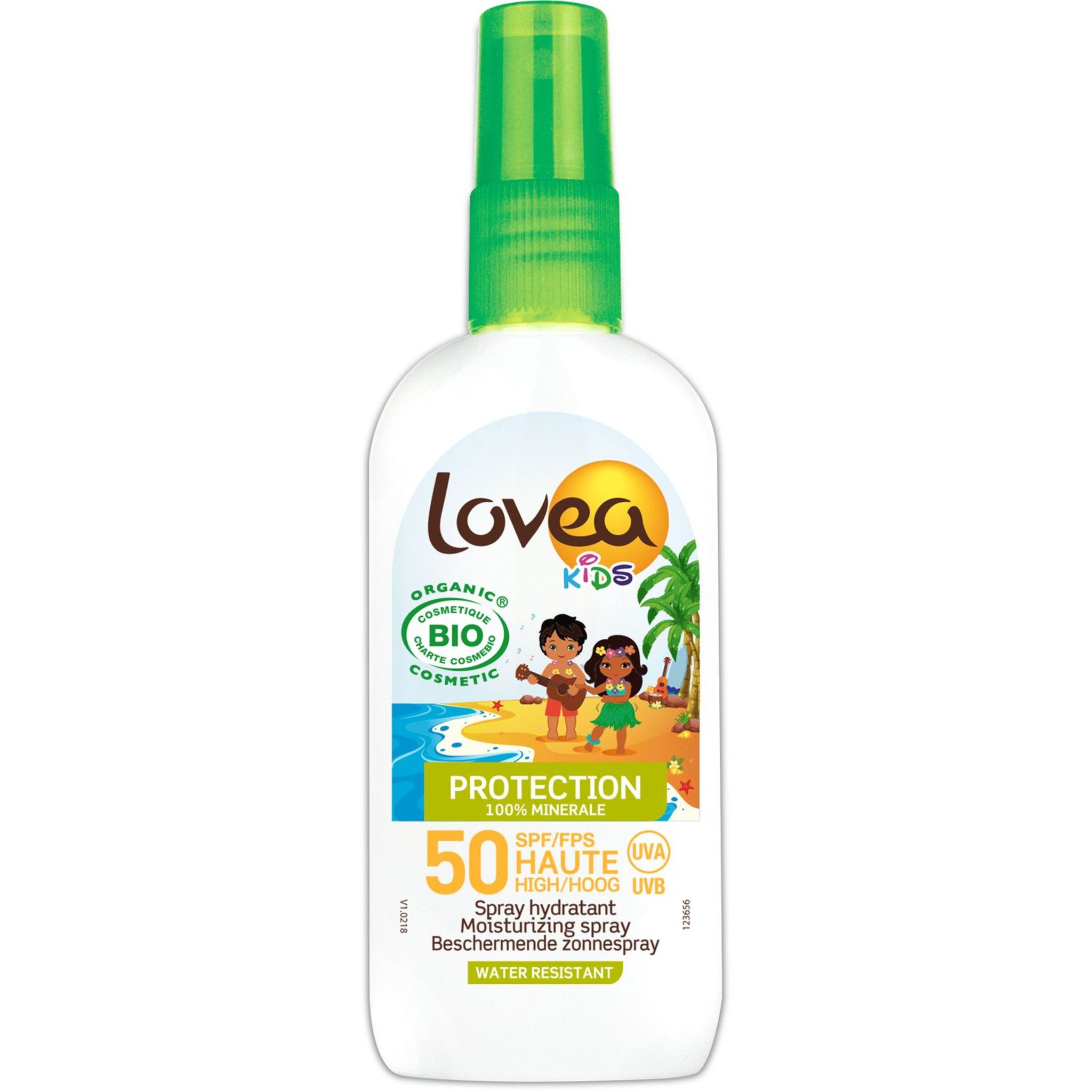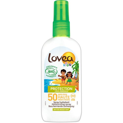 Spray solaire Kids SPF50 BIO Cosmos - 100ml Lovea vous propose le Spray Hydratant FPS 50 Haute Protection certifié BIO COSMOS*. Il hydrate tout en proposant une haute protection contre les rayons du soleil. Sa formule fluide est facile à appliquer. Sa texture est non collante ni grasse. Certifié bio par Ecocert.