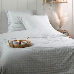 Couvre lit boutis réversible 260x240 avec 2 taies coloris naturel