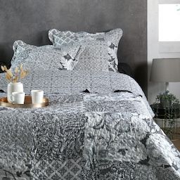 Découvrez un couvre-lit décoratif original et indémodable pour votre lit deux personnes. Le boutis OCTAVIA coloris gris est réversible et accompagné de 2 taies d'oreillers de dimensions 65 x 65 cm reprenant le même motif.Caractéristiques du couvre-lit boutis OCTAVIA:Dimensions du couvre-lit: 260x240