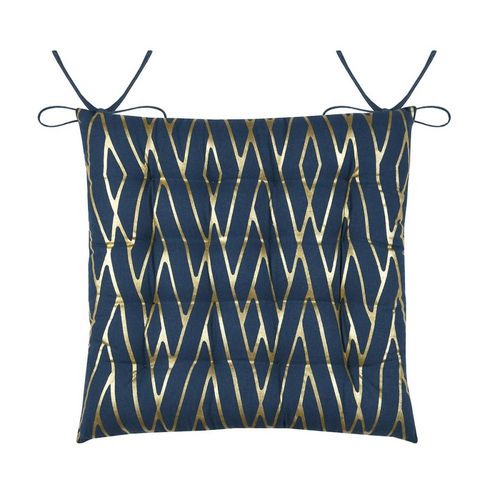 En savoir +Ces galettes de chaise Houston coloris bleu au motif graphique très réussi seront du plus bel effet dans votre cuisine ou sur votre terrasse. Fabriquées tout en coton, les galettes de chaise Houston se nouent de façon élégante à la chaise.Information sur les galettes de chaise Houston :Serrage par 2 nouettesDimension : 38 x 38 x 5 cmComposition : 100% cotonVendues par lot de 4