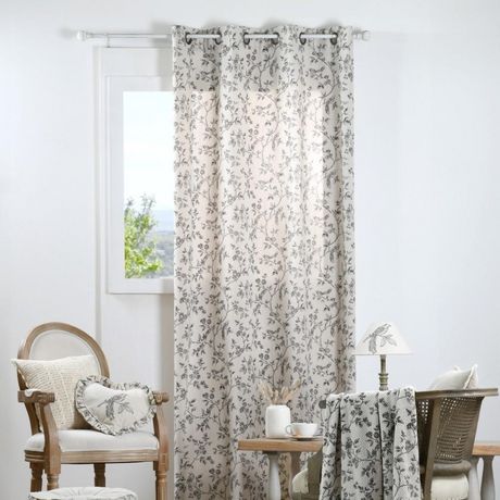 Offrez à votre intérieur un univers floral plein de charme grâce au rideau à œillets CLARINE écru 140x260cm.Fabriqué avec des matières recyclées, vous le fixerez facilement grâce à ses 8 œillets rond en métal.Rideau 55% Coton recyclé, 45% Polyester recyclé.Vendu à l'unité.Standard 100 OEKO-TEX Label