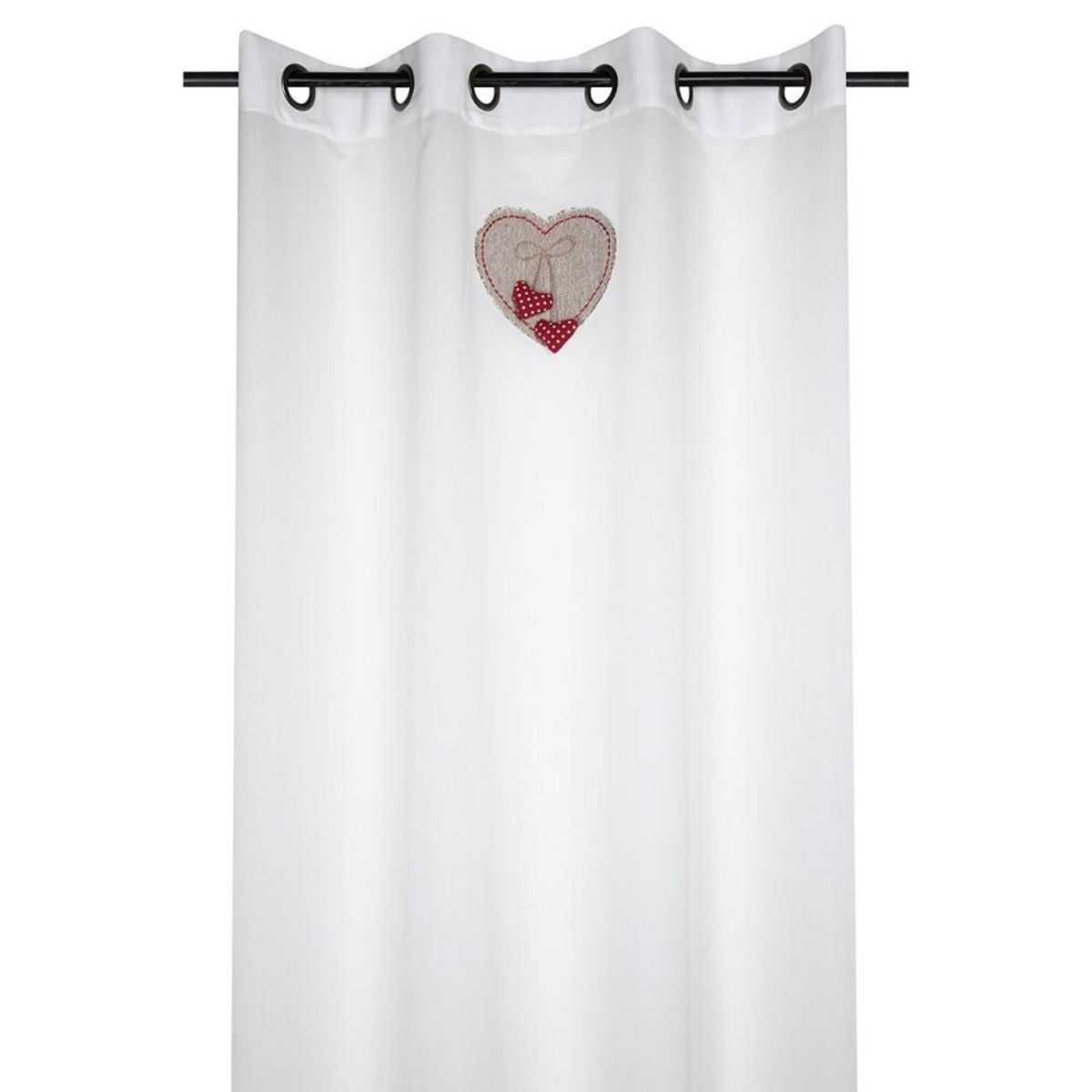 Créez une décoration d'un ton résolument tendance dans votre maison grâce au voilage à œillets Marianne avec deux cœurs pompons et une broderie coloris blanc en 70% coton et 30% polyester.Choisir ses voilages devient une véritable partie de plaisir grâce à notre grande gamme de voilages et de rideaux ! Les voilages permettent de tamiser légèrement la lumière mais également de décorer votre pièce pour créer des ambiances uniques.Le voilage Marianne décorera parfaitement votre fenêtre grâce à sa longueur de 1,40 m sur une hauteur de 2,60 m.Vous pourrez accrocher ce voilage sans aucun problème grâce à ses 8 œillets métalliques. Voilage vendu à l'unité.Consignes d'entretienlavage machine basse température (30° C maxi)Blanchiment interditRepassage interditNettoyage à sec interditSéchage machine interdit