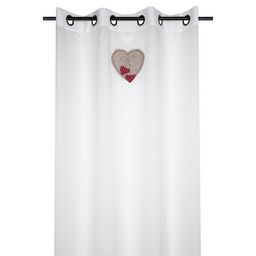 Créez une décoration d'un ton résolument tendance dans votre maison grâce au voilage à œillets Marianne avec deux cœurs pompons et une broderie coloris blanc en 70% coton et 30% polyester.Choisir ses voilages devient une véritable partie de plaisir grâce à notre grande gamme de voilages et de rideau