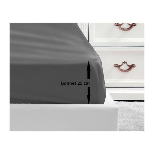 LOVELY HOME Drap Housse 100% coton 140x190x25 cm gris fonce