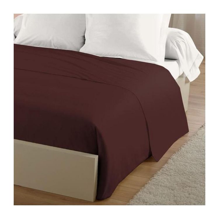 LOVELY HOME Drap Plat 100% coton 180x290 cm -1 personne - Marron