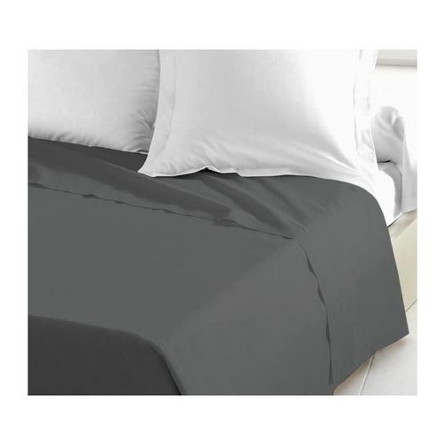 LOVELY HOME Drap Plat 100% coton 240x300 cm gris fonce