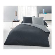 Parure housse de couette 2 personnes - 220x240 cm - 100% Coton - Bicolore Gris clair et foncé