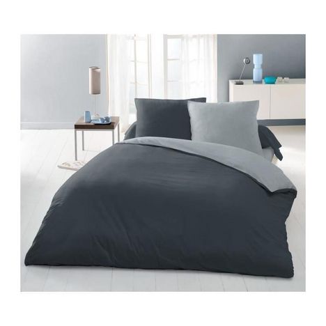 LOVELY HOME- PARURE DE COUETTE EN 100% COTON 54 FILS/CM² 220 X 240 - GRIS CLAIR / GRIS FONCE - 100% coton tissage tres serré 54 fils comprenant une housse de couette 220x240 cm + 2 taies d'oreiller 65x65 cm volant plat piqué. Parure unie bicolore. 2 personnes.
