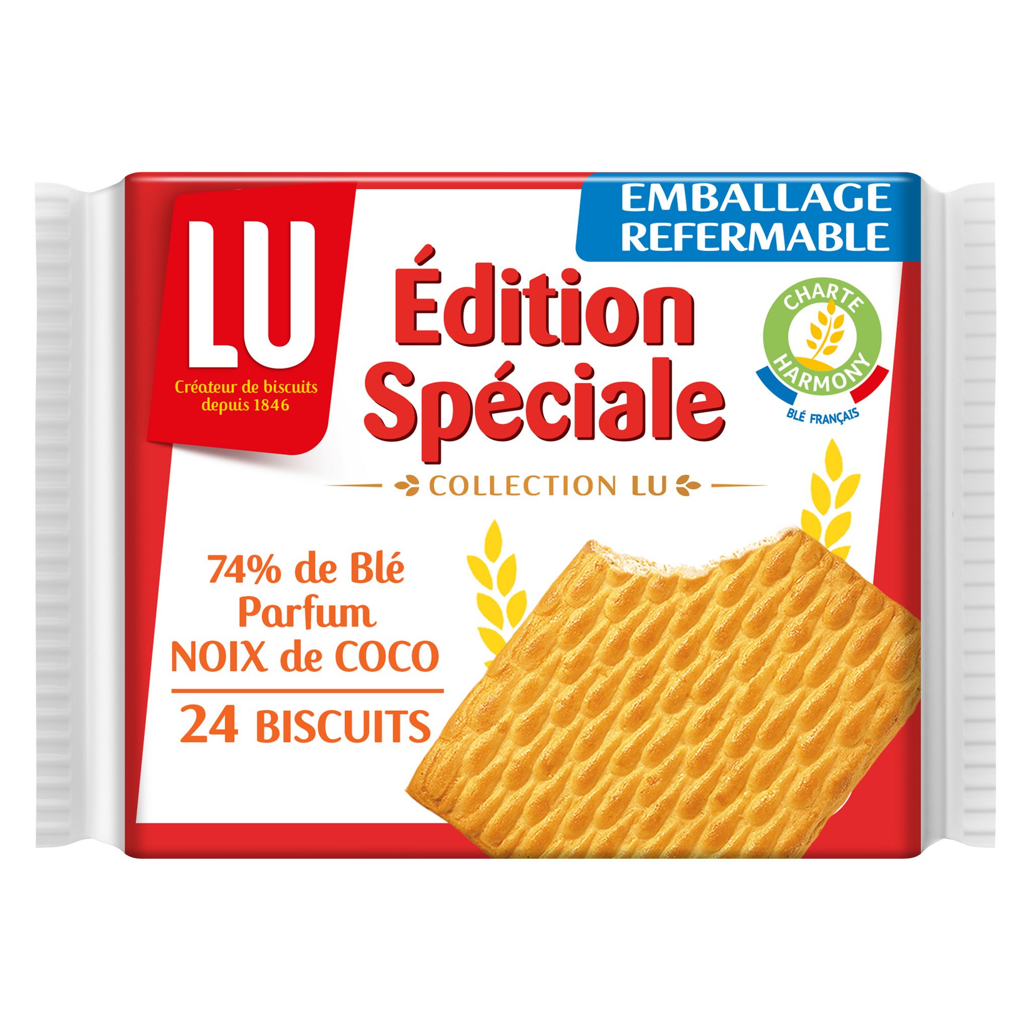 Édition Spéciale de LU®, c’est un délicieux biscuit avec 74% de blé et un subtil goût de noix de coco. Et pour emporter partout vos biscuits Édition Spéciale de LU®, découvrez les sachets fraîcheur individuels très pratiques ! Biscuits.