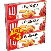 Sirop de glucose-fructose, farine de BLÉ 34%, purée de fraise 22%, amidon de BLÉ, lactosérum en poudre (de LAIT), purée de pomme, jus de cassis concentré, purée de fraises des bois concentrée 0,4% (équivalent purée de fraises des bois 0,9%), huile de colza, jaunes d'OEUFS en poudre, acidifiant (acide citrique, acide malique), gélifiant (pectines), sucre, émulsifiant (lécithines de SOJA), correcteur d’acidité (citrate de sodium), arômes, poudre à lever (carbonates de sodium), levure sèche.