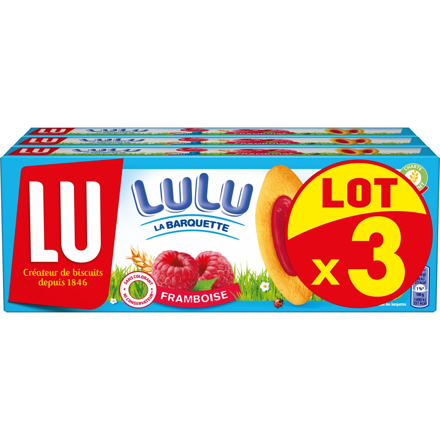 Génoise recouverte d'un nappage (55 %) à la framboise, aromatisé. LULU La Barquette framboise, un délicieux gâteau garni à la framboise et en forme de barquette pour éveiller l'imagination des enfants !
