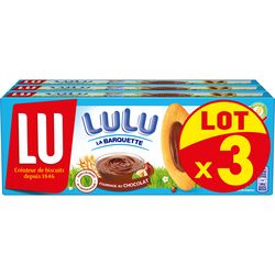 Génoise recouverte d'un nappage (54 %) au chocolat, aux noisettes et au lait écrémé, aromatisé. LULU La Barquette, un délicieux gâteau élaboré avec des ingrédients de qualité !
