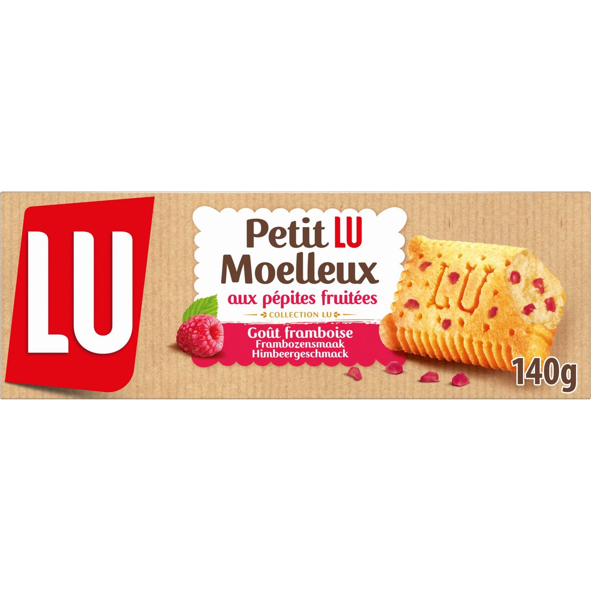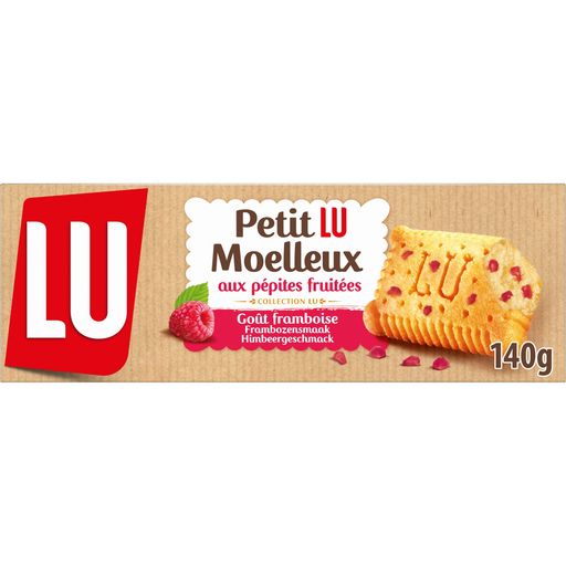 Découvrez Petit LU Moelleux framboise, une délicieuse génoise moelleuse aux savoureuses pépites fruitées. Savourez l'alliance parfaite entre le moelleux du biscuit et la touche acidulée de la framboise pour un moment très gourmand. Et oui, depuis 1846, LU n'a cessé de nous accompagner avec ses délicieux biscuits !