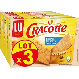 Céréales 98,3 % [farine complète de BLÉ 65,8 %, farine de SEIGLE, farine de BLÉ 10,2 %, farine de riz, farine de BLÉ malté, semoule de BLÉ, farine de sarrasin, farine d'ORGE], sucre, LAIT écrémé en poudre, sel, huile de palme, germes de BLÉ, émulsifiant (lécithine de tournesol). PEUT CONTENIR SOJA, SÉSAME.