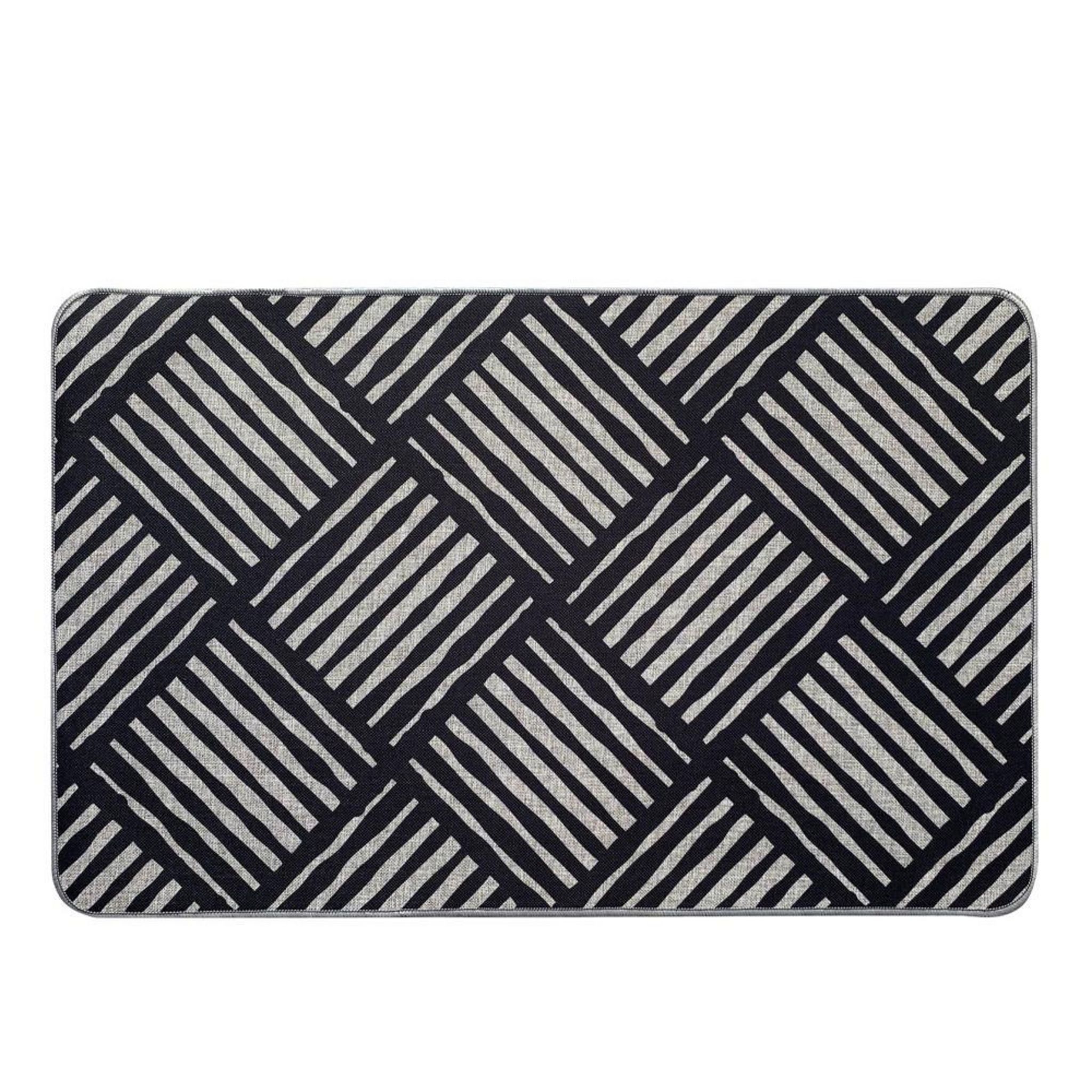 Optez pour ce tapis Luance Coloris : Gris/NoirDimension : 50x80cmAnti-poussièreLavable en machine à 30°Antidérapant