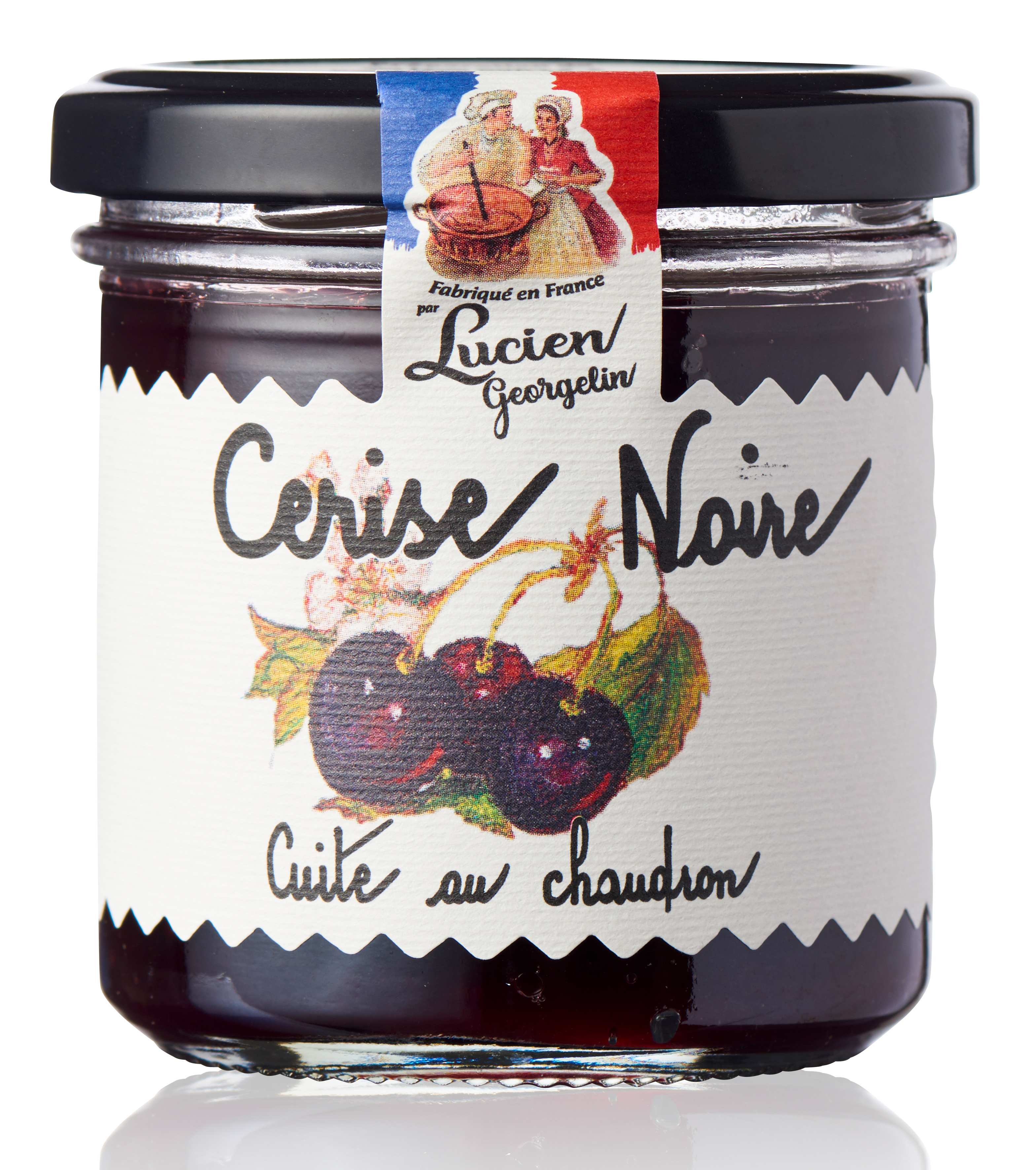 Cerises noires 65g*, sucre, gélifiant : pectines. *quantités mises en œuvre pour obtenir 100g de produit fini.