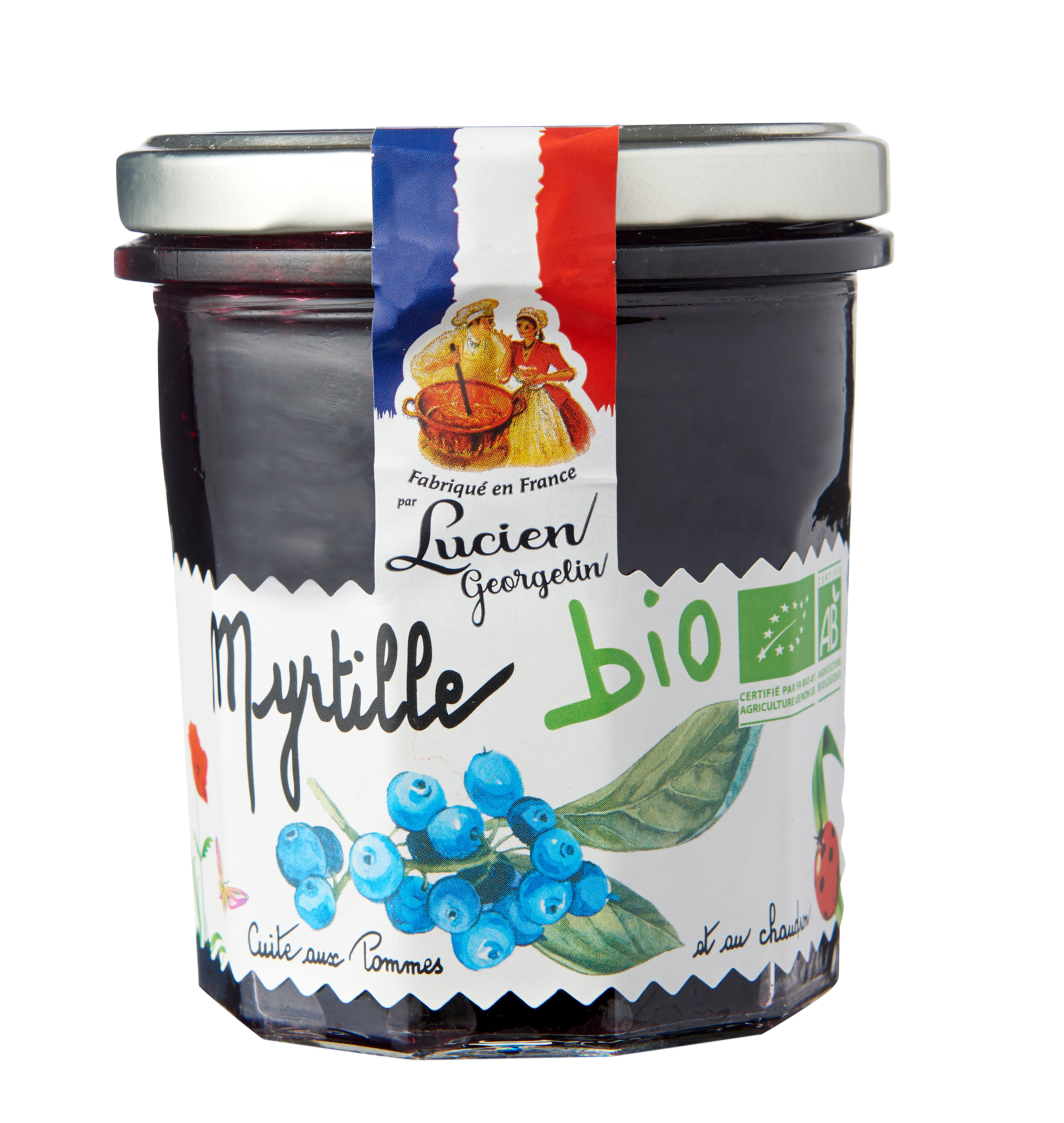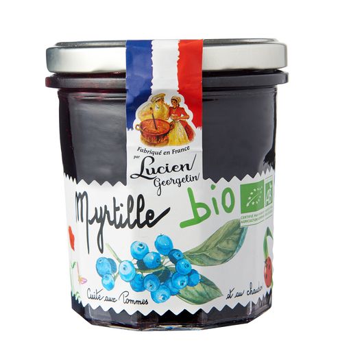 Myrtilles* 45%, Sucre de canne*, pommes* 15%, gélifiant : pectines. *Ingrédients issus de l'agriculture biologique