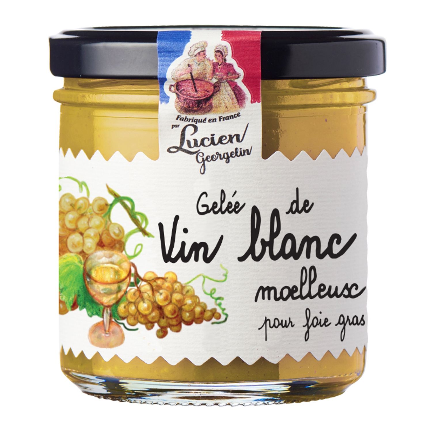 Vin blanc moelleux 40% (dont SULFITES), sucre, eau, Sauternes 2%, caramel (sucre, eau), gélifiant : pectines, jus de citron concentré, poivre, huile de tournesol