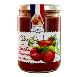Pulpe de tomate 108gr* , sel, poivre. °Tomates cultivées dans le pays Marmandais en Aquitaine. * Quantités mises en oeuvre pour obtenir 100g de produit fini
