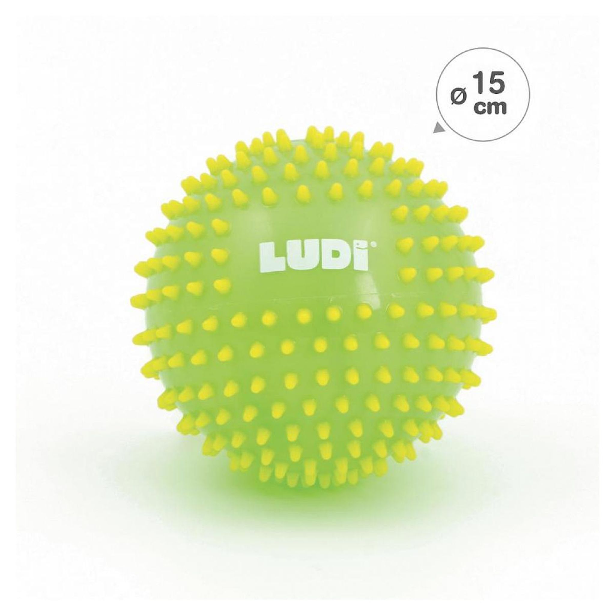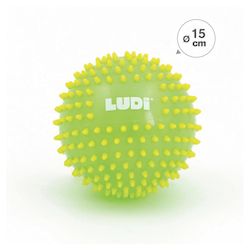 L'éveil n'a jamais été aussi drôle !. Les balles sensorielles se prêtent à une multitude de jeux. Nervurée, lisse ou à picots, grande ou petite toutes les balles stimulent le sens du toucher, la dextérité et la coordination des mouvements de Bébé. Leur matière en plastique souple et léger soulage les petites dents de Bébé et garantit une hygiène parfaite !. Adaptée pour les petits à partir de 6 mois, ces jolise balles bicolores aux picots tendres attirent l'attention de Bébé qui sera intrigué par ses couleurs. En grandissant, bébé pourra lancer la balle et la rattraper facilement, donner des coups de pieds dedans, lui courir après, s'asseoir et se rouler dessus.. En famille vous pourrez également partager des temps calme ou des fous rires au cours d'une petite séance de massage relaxant ou de chatouille. Des moments de complicité inoubliables !. Recommandée pour les bébés de plus de 6 mois. Diamètre : 15 cm. Coloris au choix : rose, bleu ou vert. Composition 100 % PVC. Lavable avec un chiffon humide.