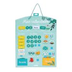 Voyagez dans le temps, jour après jour !. Ce calendrier mural en tissu brodé aide les enfants à comprendre et à maîtriser le passage du temps. Grâce à ses éléments amovibles en feutrine, les petits curieux pourront s'amuser à découvrir les jours de la semaine, les mois, les saisons, et même la météo du jour !. Apprendre devient un jeu d'enfant !. Guidés par leurs parents, les enfants apprendront en s'amusant à chaque étape, renforçant ainsi leur confiance en eux et leur autonomie. Chaque matin devient une aventure excitante pour se préparer à la journée qui vient !. Un Design Astucieux et Ludique. Ce calendrier, avec son tissu doux et brodé, est conçu pour être accroché facilement au mur grâce à sa cordelette. Les étiquettes amovibles en scratch sont parfaitement adaptées aux petites mains, permettant aux enfants de manipuler les éléments en toute simplicité. Et pour encore plus de praticité, des poches de rangement sont intégrées pour que chaque élément amovible ait sa place, évitant ainsi tout désordre !. Des éléments interactifs. Le calendrier comprend tout ce qu'il faut pour se repérer dans le temps : 12 mois, 7 jours, 4 saisons, 6 années, 12 chiffres et 5 climats. De quoi s'amuser toute l'année !. Caractéristiques. Également disponible en couleur Corail. Dimensions : 38 x 47 x 0,5 cm. Matière : 100% Coton. Lavable avec un chiffon humide. Séchage à plat. Adapté pour les enfants à partir de 3 ans. Petits éléments : danger d'étouffement.