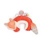 S'amuser sans se fatiguer !. Le coussin d'activités renard permet à bébé de jouer sur le ventre sans se fatiguer. Dès 3 mois, il pourra s'amuser avec les différentes activités et multiples textures présentes : un miroir, un anneau de dentition avec des petites billes, 1 imagier en feutrine avec 3 illustrations sur le thème de la forêt, 1 grelot et du papier froissé. Il aide les petits à développer leur tonicité et le renforcement musculaire en position ventrale. Evolutif, le coussin s'adapte en fonction de l'âge de votre enfant. Bébé pourra se mettre en position ventrale. Le coussin pourra être mis autour de lui, posé sur ses genoux il pourra jouer avec les différentes activités et il pourra par la suite être utiliser coussin de voyage à mettre autour de son cou lors des déplacements