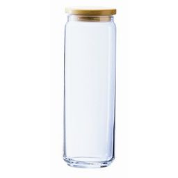 Simplicité et sobriété définissent parfaitement ce bocal en verre avec couvercle en bois très pratique pour les rangements dans la cuisine. Bocal en verre transparent pour retrouver facilement les aliments. Couvercle en bois pouvant s'accorder facilement avec votre plan de travail. Capacité de 1,5 L pouvant accueillir facilement pâtes, riz, farine, ou sucre. Existe en différentes tailles pour assortir vos rangements. Ce bocal en verre avec couvercle en bois est facile d'entretien