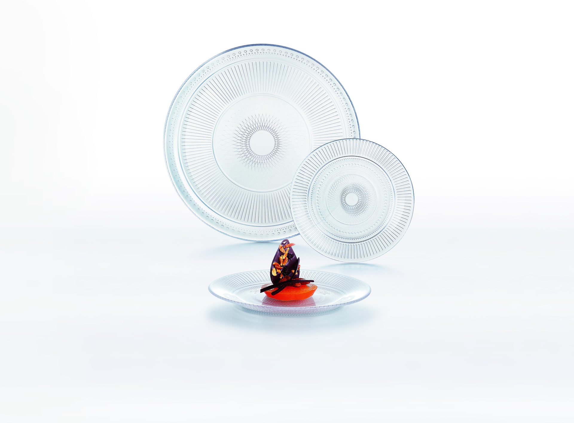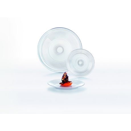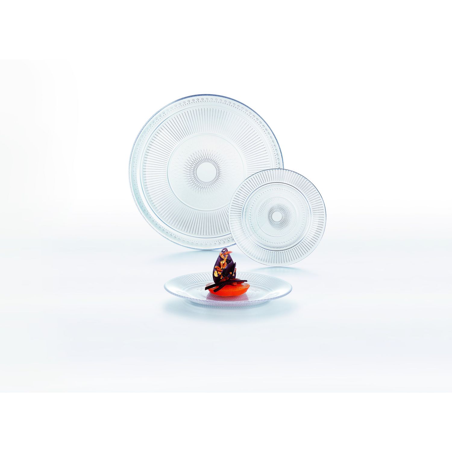 Service 7 pièces assiettes à dessert et plat de présentation en verre trempé LOUISON